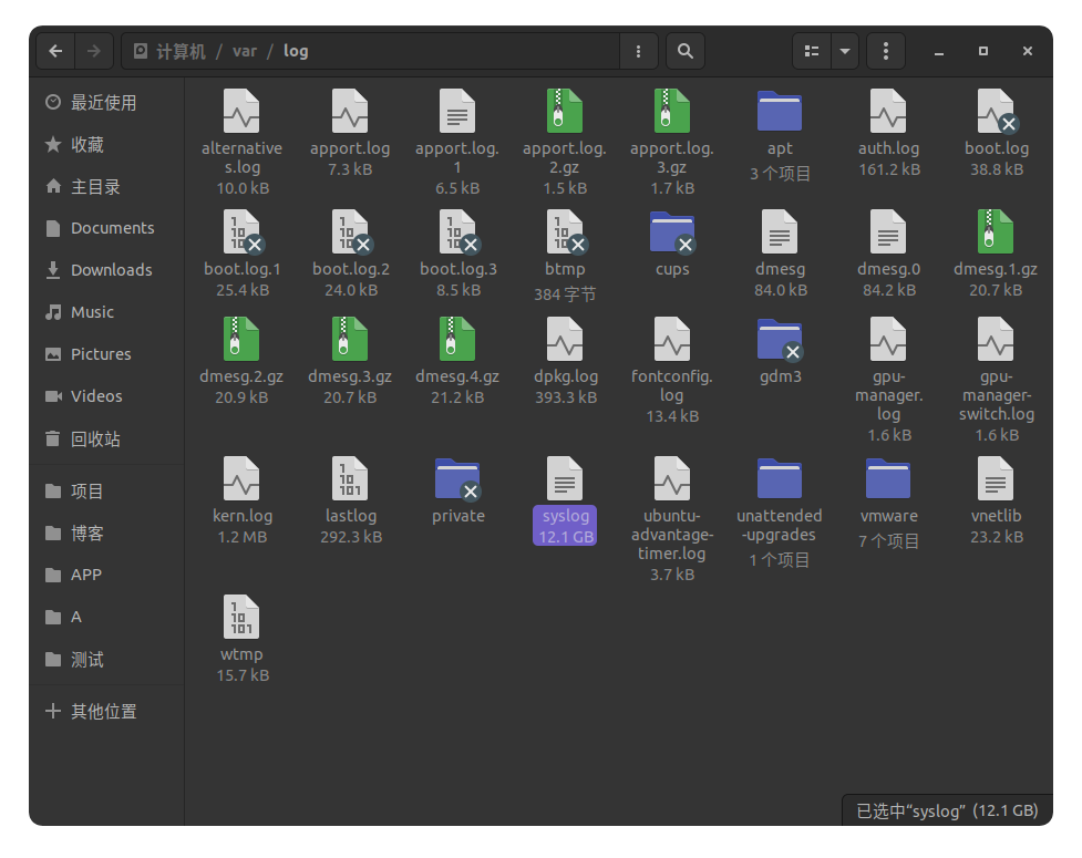 扒拉一下后, 发现罪魁祸首文件是: /var/log/syslog. syslog, 应该是系统日志的意思.